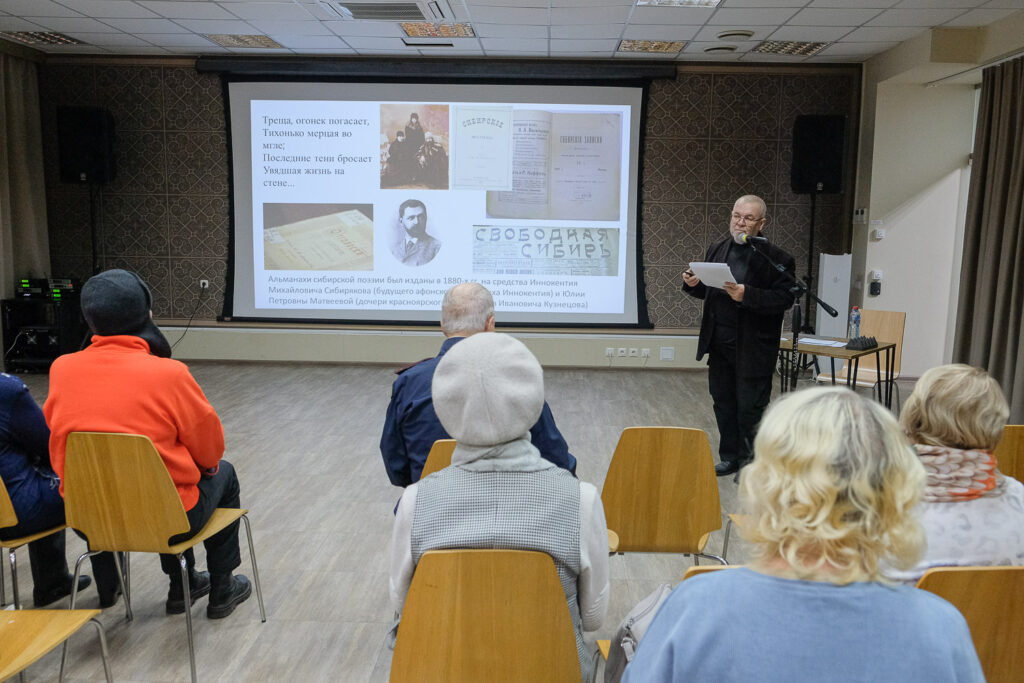 24 октября в Культурно-историческом центре «Успенский» прошла первая лекция «(Не)забытые голоса Сибири» главного хранителя Красноярского регионального общественного фонда развития духовной культуры «Касьяновский дом», члена Союза писателей России Геннадия Малашина. Мероприятие, как и одноименный проект «Касьяновского дома», посвящено судьбам поэтов и поэзии на берегах Енисея XIX-XXI веков.